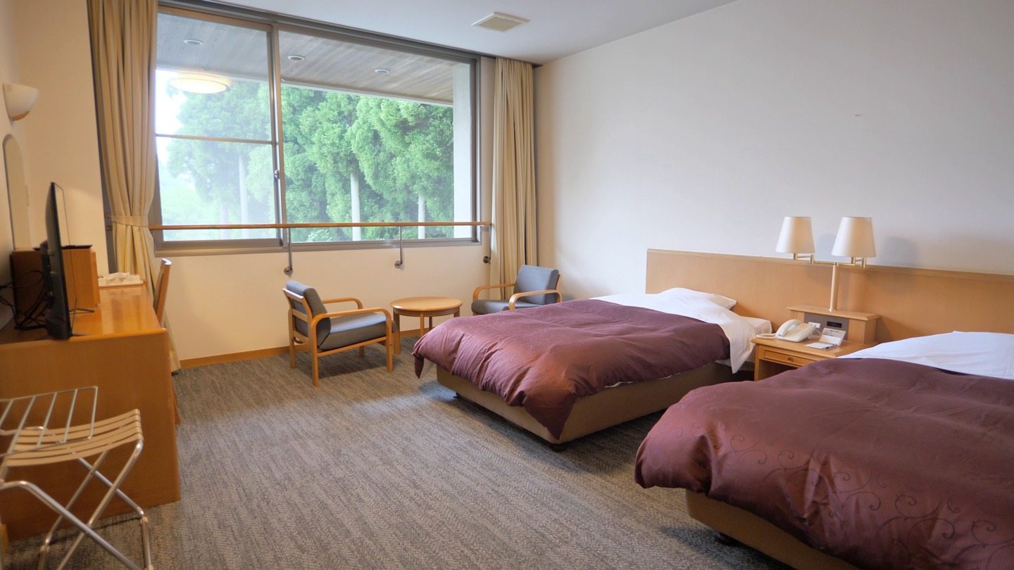 洋室はツインルームをご準備しています。広々とした室内でゆっくりおくつろぎください。